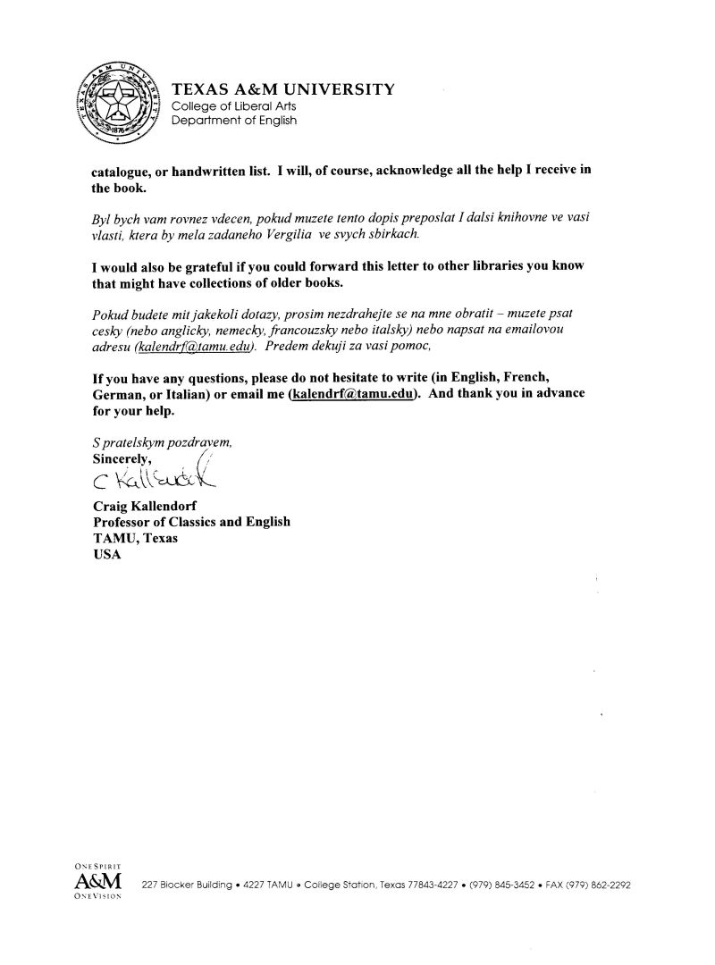 Slovenská národná knižnica dostala od profesora Craiga Kallendorfa z Texaskej univerzity list,