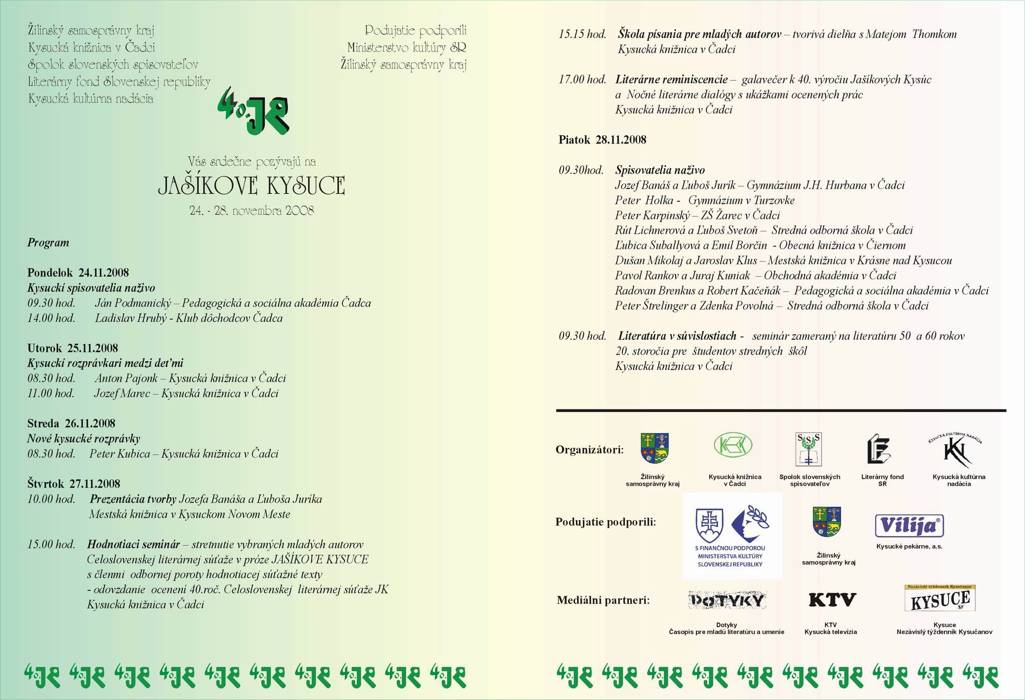 Pozvánka do Kysuckej knižnice na 40. ročník Jašíkových Kysúc, 28. 11. 2008