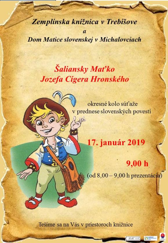 Okresná súťaž v prednese slovenskej povesti 17. januára 2019 o 9:00 h v priestoroch Zemplínskej knižnici v Trebišove