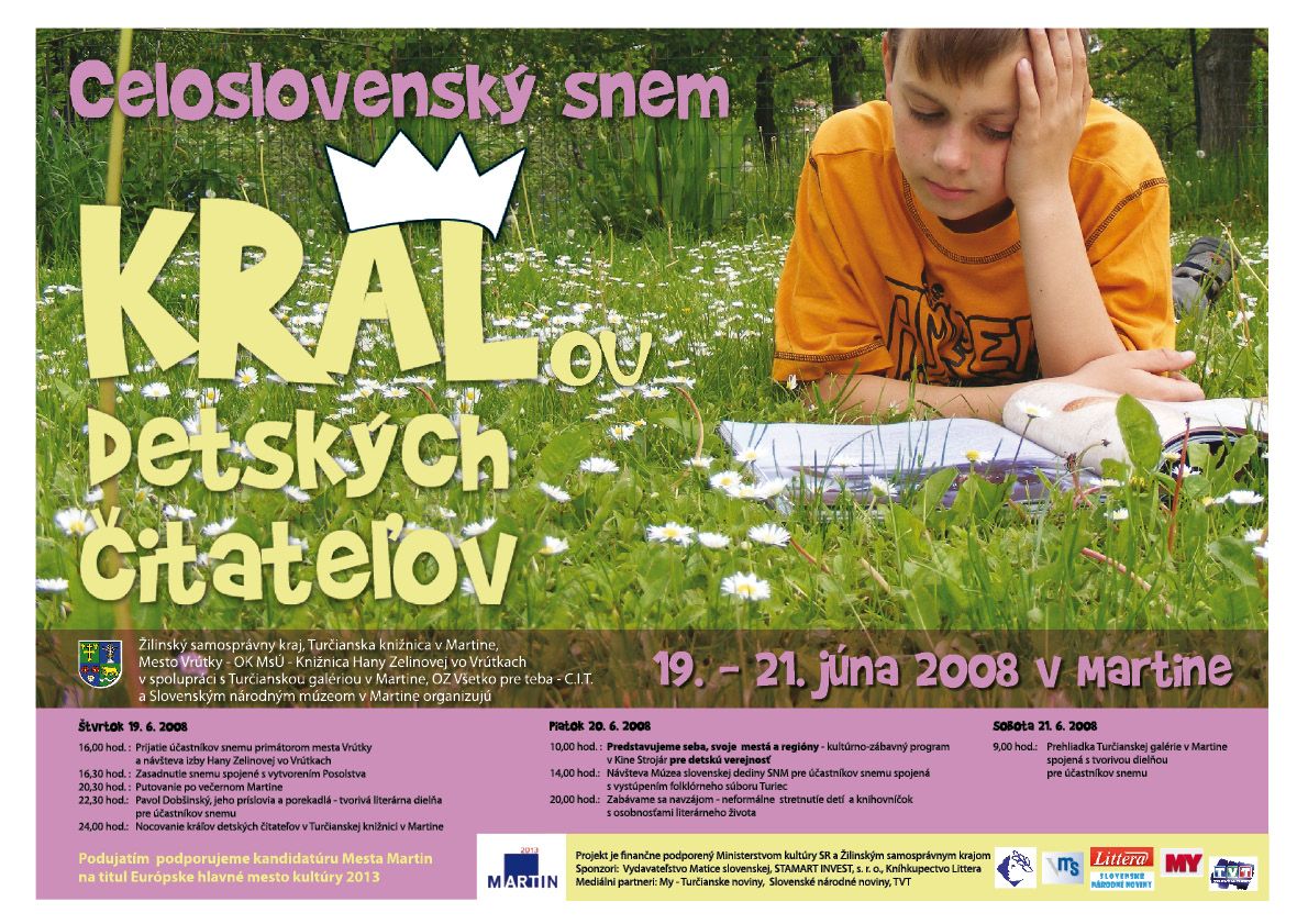 Pozvánka na celoslovenský snem kráľov detských čitateľov, 19. - 21. 6. 2008 v Martine