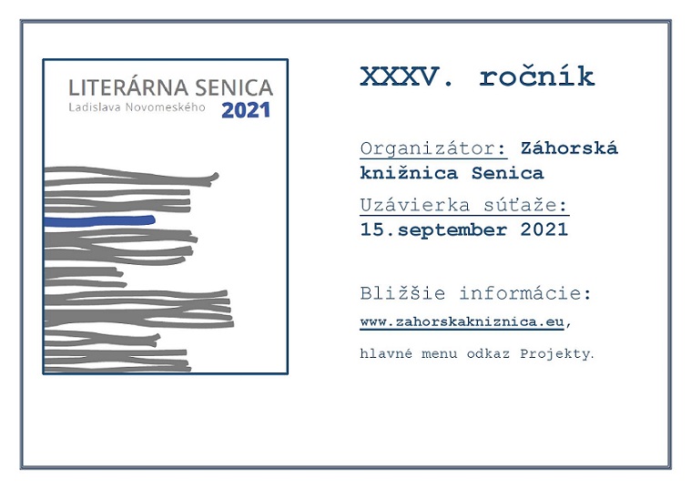 Záhorská knižnica v Senici organizuje XXXV. ročník súťaže Literárna Senica Ladislava Novomeského 2021.