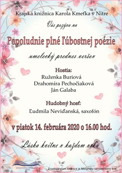 | Názov podujatia: | Popoludnie plné ľúbostnej poézie |